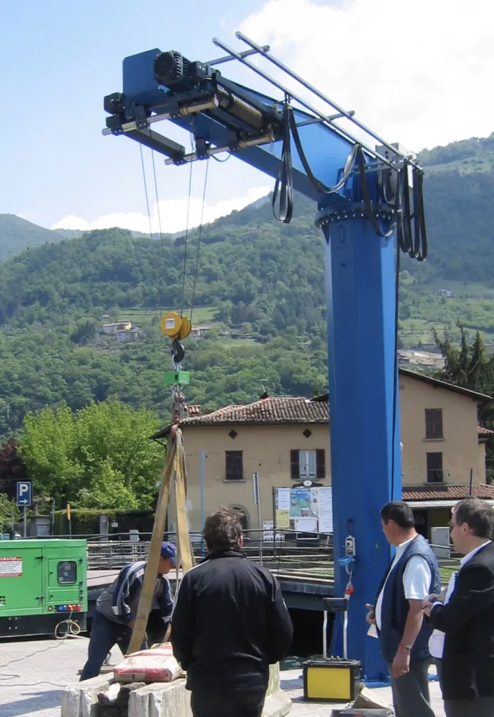 Le gru sono disponibili anche con braccio snodato o scorrevole, ideali per ambienti complessi o con carichi di lavoro elevati.